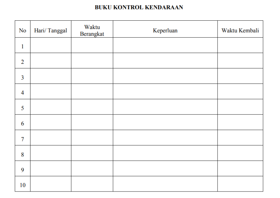Contoh Format Buku Kontrol Kendaraan di Sekolah