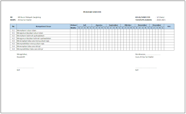 PROGRAM SEMESTER FIKIH SD/MI LENGKAP